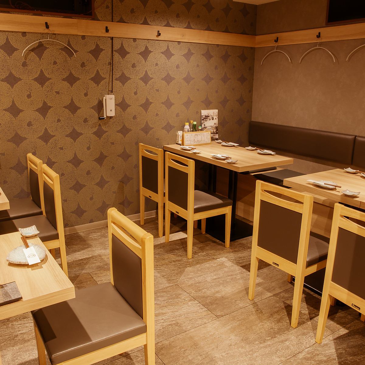 木を基調とした落ち着いた雰囲気日本酒に合う落ち着いた店内を演出
